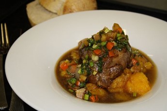 - In an ovenproof pot, heat a little olive oil, season the rumps well with salt and pepper and fry on all sides till golden and then remove the chumps.