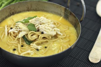 6. Using a tongs, divide the noodles among the bowls and ladle the soup over them. Sprinkle with coriander and serve.