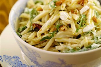 - Sprinkle over the walnuts and grate a little nutmeg over the top. Add the rocket and Parmesan and carefully mix. Season to taste and serve immediately.