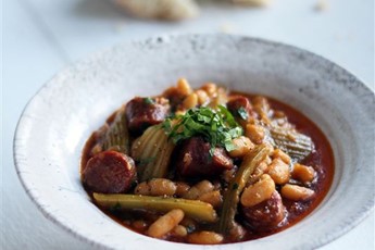 Winter stew of celery, chorizo and cannellini beans recipe