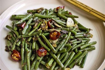 A little restaurant near the Music Conservatory in Chengdu used to serve a vegetarian version of Sichuanese dry-fried green beans that was a delicious alternative to the classic dish, which is made with minced pork.