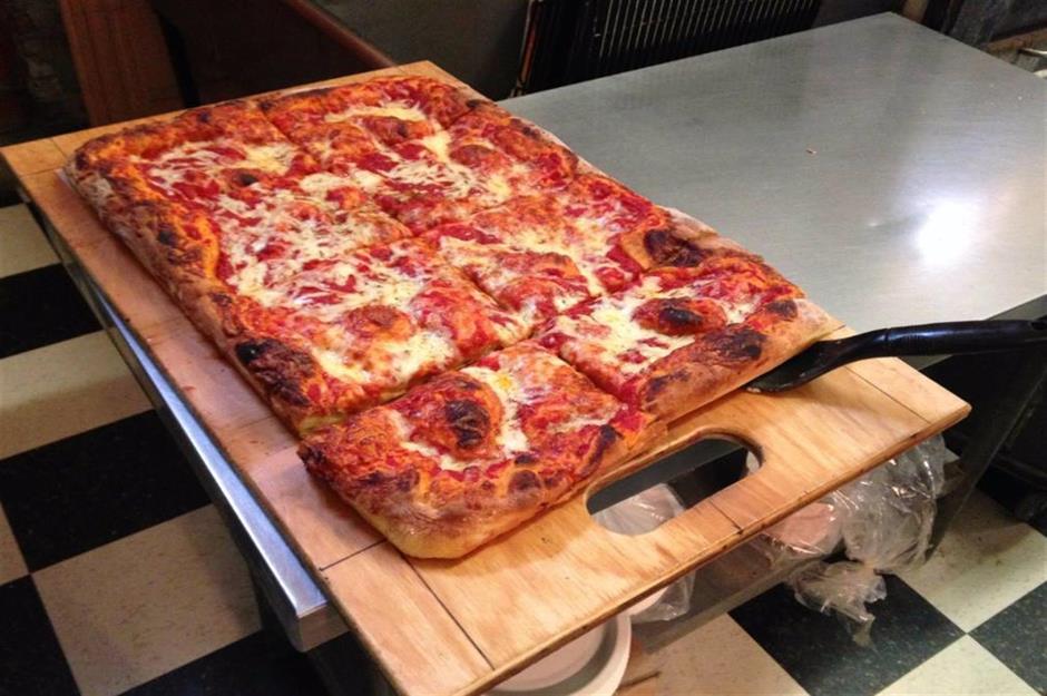 If you haven't tried Sicilian-style pan pizza, Prince Street Pizza in NYC’s SoHo is the place. This kind of pizza is significantly thicker, doughier, and fluffier than classic Neapolitan, and the hearty crust can handle a generous amount of sauce, cheese, and toppings. Ranked seventh on Yelp’s 100 Best Pizza Spots 2024 list, this joint has a dedicated following for its pepperoni pizza, which comes topped with the restaurant’s signature juice-holding ‘roni cups,’ making for a gloriously greasy slice. Prince Street also has several other outposts in cities like Los Angeles, Las Vegas, and Miami.