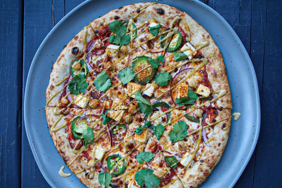 At low-key spot Pizza Den, you can choose from four signature pies – the Classic Pie (with a choice of toppings including baby kale, chicken, sausage, and ricotta), the Brooklyn Pie (fresh mozzarella, tomato sauce, olive oil, and basil), the Sauceless Pie (mozzarella cheese, ricotta, goats' cheese, olive oil, basil, and garlic), and the Tomato Pie (tomato sauce, garlic, olive oil, and fresh basil). There's also a selection of 'trending now' pizzas such as the Buffalo Soldier, which comes topped with grilled chicken, Buffalo sauce, and house-made blue cheese.