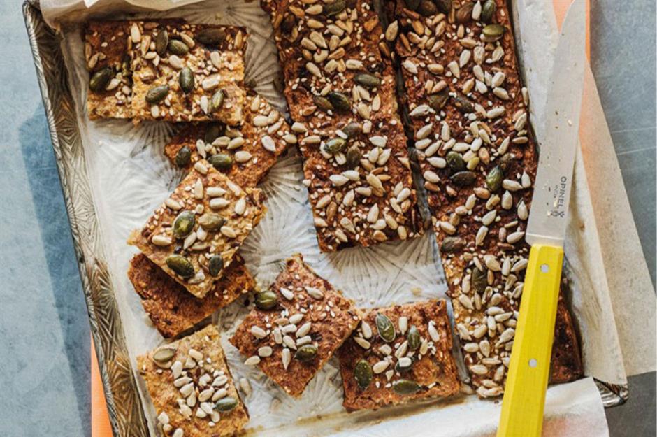 Brimming with oats, banana and dried fruit, these energy-boosting bars would make a fantastic breakfast, post-gym snack or lunchbox treat. All you need to do is stir the ingredients together and spread them evenly in a baking tin, then bake until golden. They’re great for the whole family, including babies and toddlers; just grind up the seed topping (or leave it off entirely) to make them safe for little ones.