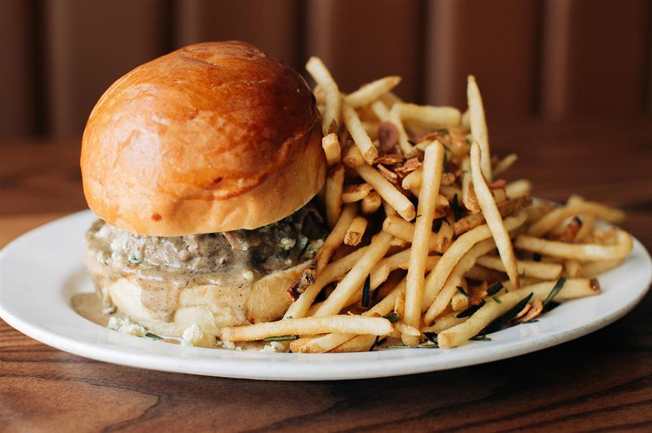 An LA institution, this small but friendly diner has been dishing up its signature steakburger since 1927. Simply served with The Apple Pan's house-made sauce, mayonnaise, pickles, and lettuce, customers can also add melted Tillamook Cheddar. There are other popular burgers on the menu, but sometimes there's no need to mess with an original.