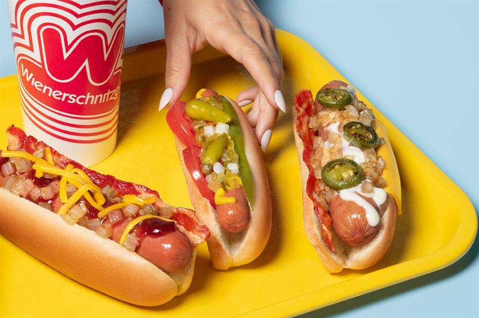 Despite its name, this historic fast food company doesn’t actually sell wiener schnitzel (a type of schnitzel made of thin, breaded, pan-fried veal) – but it does make a fantastic hot dog. Founded in 1961 by a former Taco Bell employee, the chain is famous for the A-frame roofs of its older restaurants, as well as its menu of loaded hot dogs, corn dogs, and indulgent milkshakes. The majority of the chain’s locations are in California and Texas, though there are some in other states including Arizona, Arkansas, Colorado, and Illinois.
