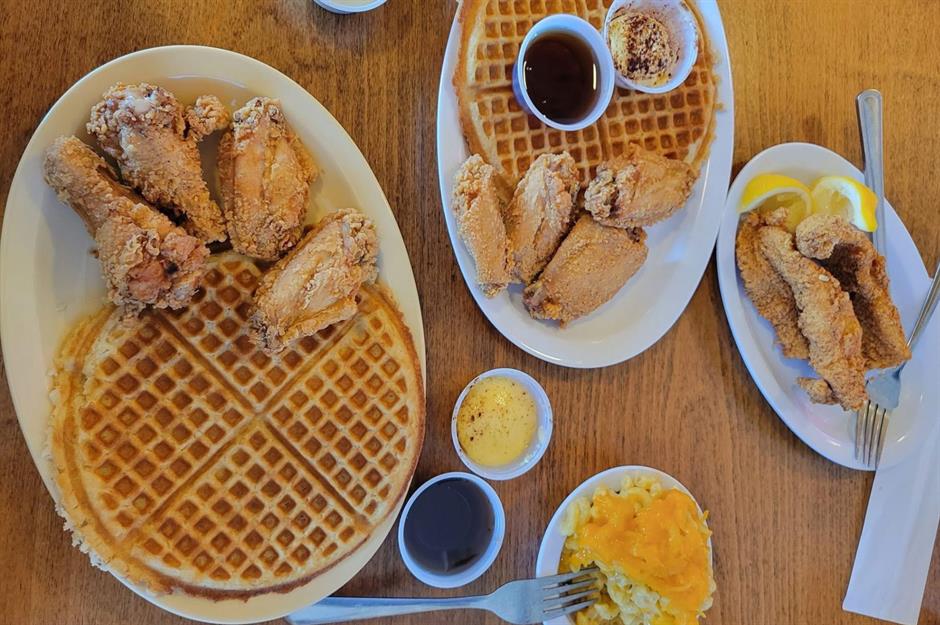 If you’re a fan of chicken and waffles, there’s no better place than Frank’s Famous Chicken & Waffles, which featured on Food Network's Diners, Drive-Ins and Dives. Customers love pairing the pecan and bacon waffles with perfectly seasoned fried chicken. It's not all about the chicken, though: the fried catfish, fried gherkins, and sweet tea also get rave reviews.