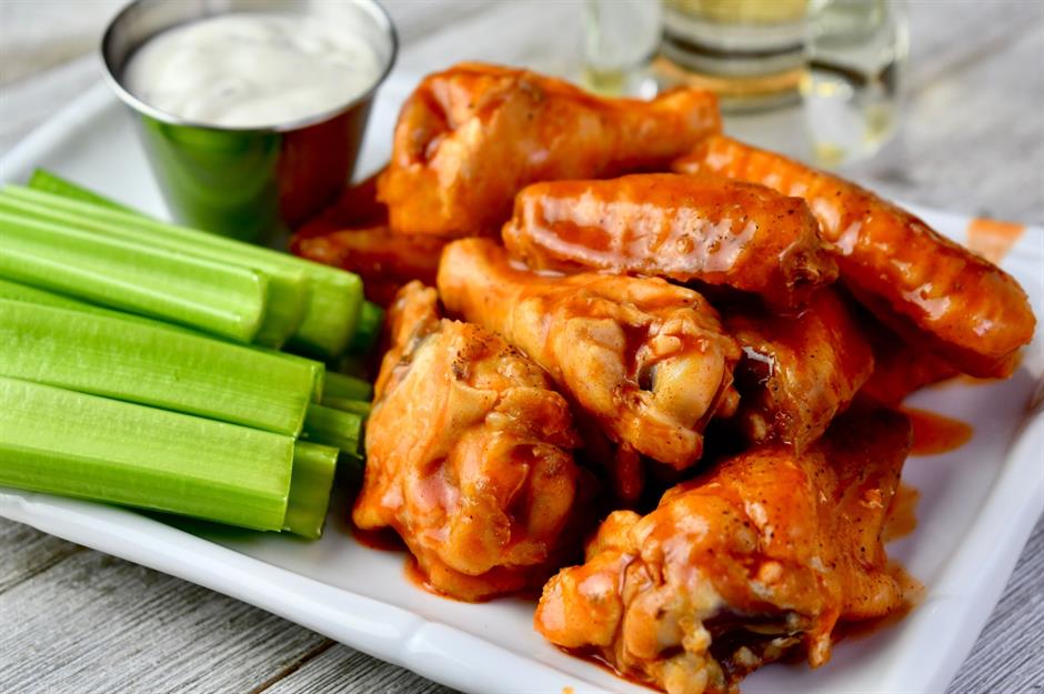 You really can't beat a tray of hot, sticky Buffalo wings, served with cooling celery sticks and a blue cheese dip. This is a really simple recipe; just remember to marinate the wings overnight in their garlicky rub for the best flavour. The wings are then baked in a sweet, hot Buffalo sauce, resulting in the perfect finger-licking snack or party food.