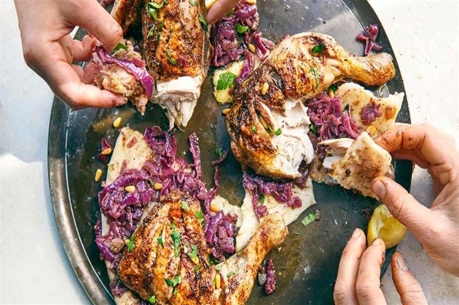 In this Mediterranean-style recipe, spatchcocked chicken is marinated in lemon, garlic and herbs, roasted, then served with a crisp salad. The chicken cooks in around 40 minutes, but it's important to baste it regularly to ensure moist and flavoursome results. Here's a clever tip: try rubbing salt and baking powder into the skin prior to cooking, and leave the chicken to rest for at least 20 minutes to make it crispier.
