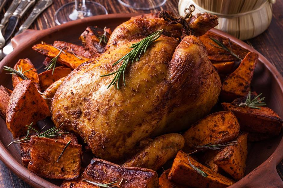 Think of this as roast chicken, Southeast Asian style. Before roasting, it's rubbed with a marinade of honey (use dark runny honey for the best flavour), soy, lemongrass, chilli, ginger and orange. Give the chicken an occasional baste while it's in the oven so the flavours can really penetrate. When it's done, serve it with stir-fried rice or lemony roast potatoes.