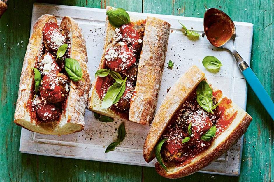 When it comes to favourite family meals, meatball subs always score highly. This simple recipe will produce four seriously saucey, very tasty meatball sandwiches – to make more, just double the recipe. To really impress everyone at the table, once you’ve assembled the bottom half, top the meatballs with sliced mozzarella, provolone, Cheddar or American-style cheese and grill until melted. Any leftover meatballs are perfect for lunch the next day.