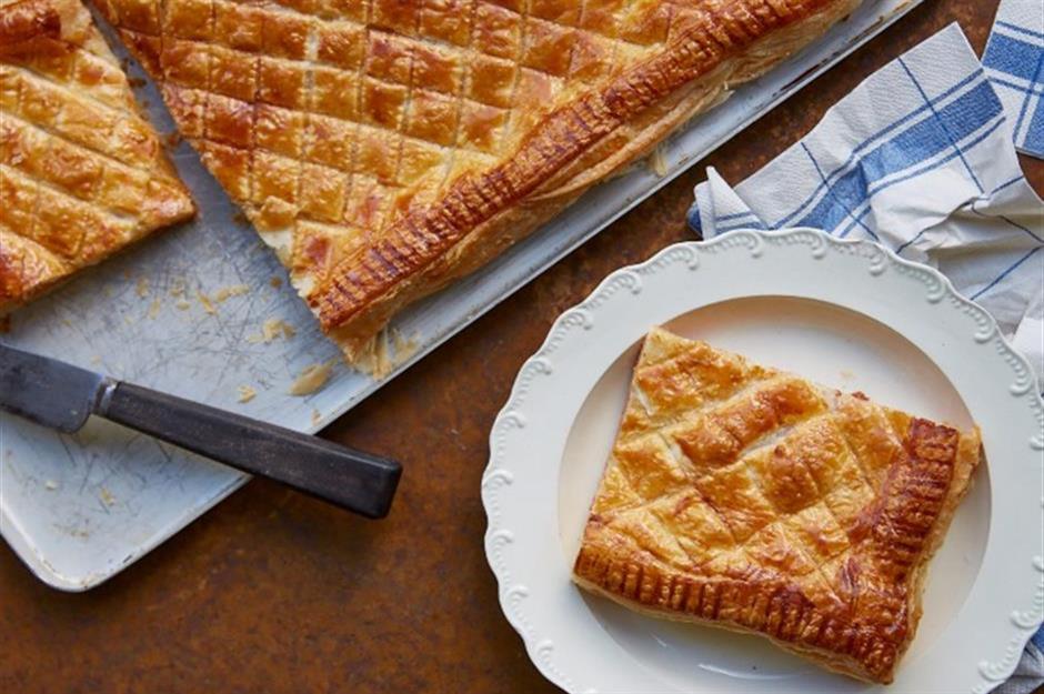 Melting cheese, ham and tomatoes are sandwiched between two sheets of shop-bought puff pastry in this easy, tasty dinner that call for just a few ingredients. With that in mind, it's important to use a strongly flavoured cheese such as Gruyère or aged Cheddar and good-quality ham. Serve with a green salad and enjoy any leftovers for lunch the next day.