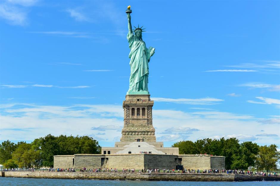 A gift from France to the United States in 1886 to commemorate 100 years of friendship, the enormous Statue of Liberty is recognized around the world as a symbol of freedom. The copper statue, more than 305 feet (93m) tall, is typically visited by around 3.5 million people every year. People can usually access various parts including the museum, theater, pedestal and crown – check the website for details.