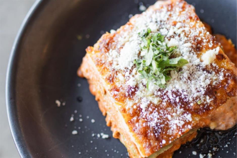 Family-run Iozzo’s Garden of Italy (so called because it has a beautiful garden patio) dates back to the 1930s – so it’s fair to say its lasagna has stood the test of time. One for the carnivores, the dish is heavy on the meat sauce and can be accompanied by meatballs. It comes artistically draped in both marinara and Alfredo sauces.