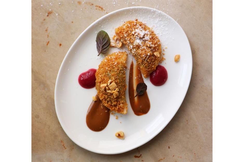 This striking restaurant, complete with curved walls and gold detailing, has become renowned for its expansive offerings. The food here is beautifully plated, incorporating complementary colours and textures that result in fantastic tastes. Guests can enjoy three courses from the à la carte menu from 19,250 Hungarian forints (£41/$56), with dishes like butternut squash soup with Camembert, and a spelt risotto with mushrooms and elderberry.