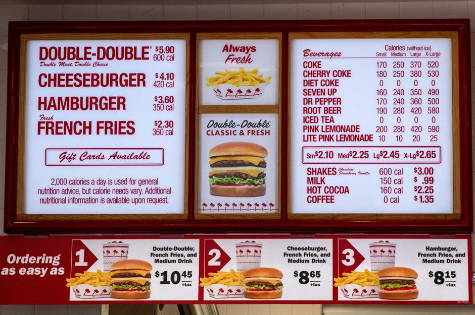 For the first 10 years, In-N-Out only sold drinks by the bottle, but this all changed in 1958 when the chain introduced fountain options. This switch saw the company now offering a choice of Pepsi Cola, Nesbitt Orange and Hires Root Beer, and a 12fl oz (350ml) cup was priced at just 10 cents. In-N-Out has since updated its beverage options, with a mix of pink lemonades, shakes and other fountain drinks now available.