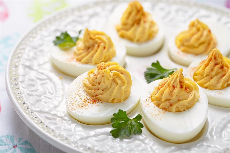 Hartgekochte Eier haben nie wirklich an Popularität verloren. Aber mit hartgekochtem Eigelb einen Snack wie gefüllte Eier zuzubereiten, ist eher aus der Mode gekommen. Die Eiervorspeise, für die gekochtes Eigelb mit Mayonnaise und Senf vermischt und dann in halbierte gekochte Eier gefüllt wurde, war in den 1970er-Jahren ein fester Bestandteil von Dinnerpartys.