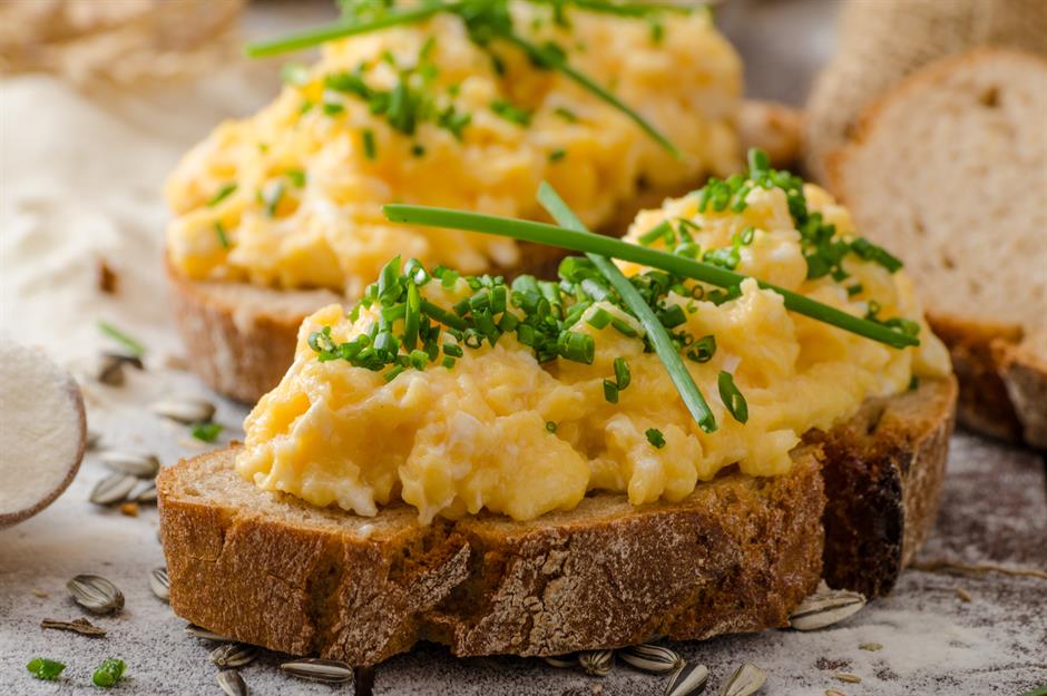 Für das perfekte Rührei müssen Sie nicht mehr tun, als die Eier gut zu verquirlen, bevor Sie sie zu heißer Butter in die Pfanne geben. Milch, Sahne oder Wasser verflüssigen die Eier nur und der Geschmack geht verloren – nicht gerade das, was man sich vorstellt.