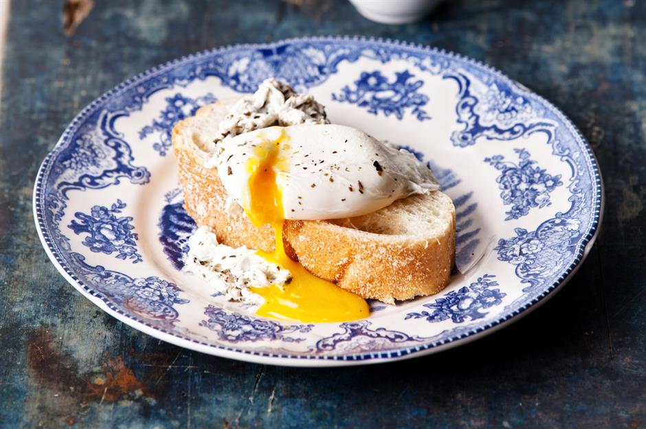 Für pochierte Eier brauchen Sie einen tiefen Topf und die frischesten Eier, die Sie bekommen können. Geben Sie einen Schuss Essig ins Wasser, das Sie dann umrühren, bevor Sie die Eier hineingeben. Dann sollte der Topf vom Herd genommen werden, damit die Eier für bis zu fünf Minuten im heißen Wasser ziehen können. Fertig.