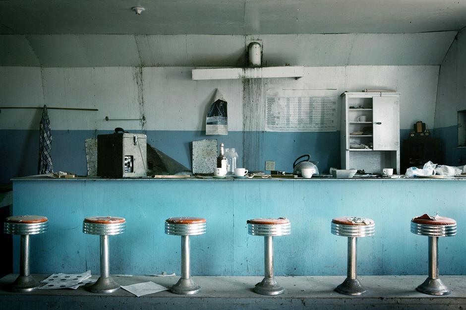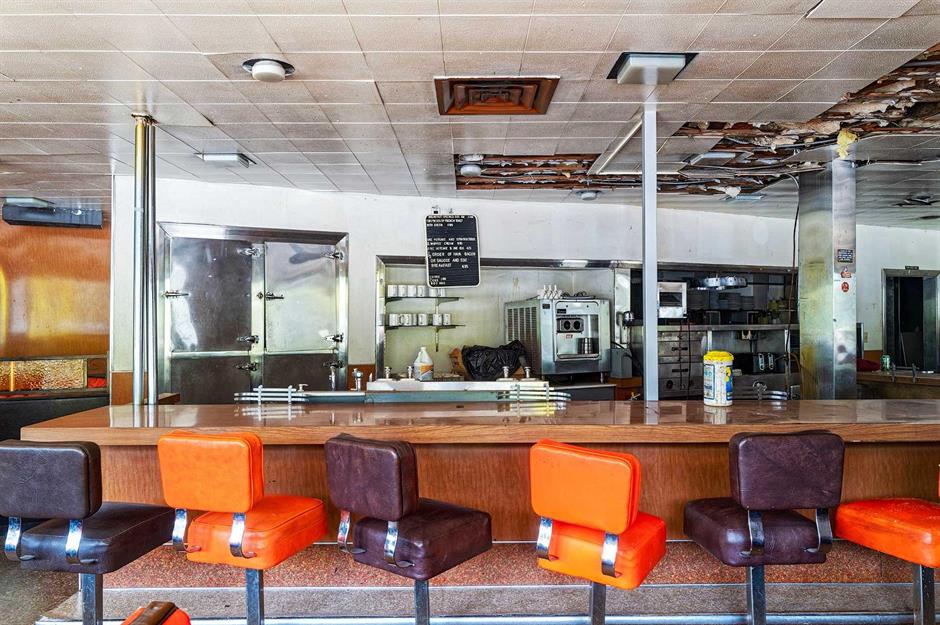 This picture from an unknown diner in the hamlet seems to show off a style that is more in keeping with 1950s diners, which offers an indication as to when it was likely built. But whenever the diner last welcomed customers, it's obvious that nobody has eaten here for many years. The walls are moulding, the stools are losing their stuffing and the counter has certainly seen better days.