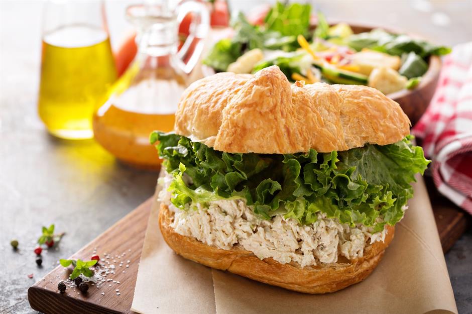 To make a sandwich-based riff on a classic Caesar salad, combine 2 tbsp Greek yogurt or crème fraiche with 1 tbsp mayonnaise, 1 tbsp finely grated Parmesan, a finely chopped anchovy, a dash of Worcestershire sauce and a squeeze of lemon. Season generously with black pepper, then stir in a couple of handfuls of shredded, cooked chicken. Rub two slices of bread with a cut garlic clove, drizzle with olive oil and toast in a griddle pan. Spread one slice of sourdough toast with the chicken, layer shredded baby gem lettuce on top (you could also add a sliced boiled egg), then add the second slice of toasted bread.