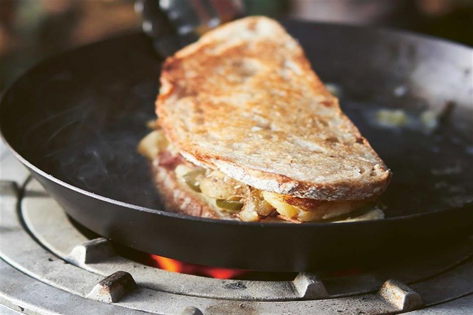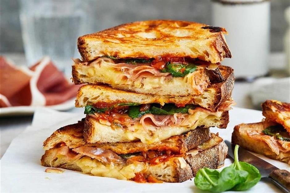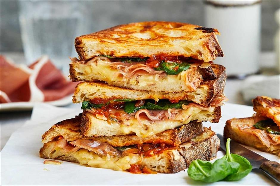 To turn a cheese toastie into something really special, layer sweet and salty Parma Ham over sourdough, then add strong Cheddar, a dollop of tomato chutney, some grated apple and a few spinach leaves. The trick is to lightly butter the outside of the bread and cook the sandwich in a hot frying pan weighed down by another heavy pan for three minutes on each side, until the outside is crisp and the cheese has melted. Serve with extra sliced apples and salad leaves.