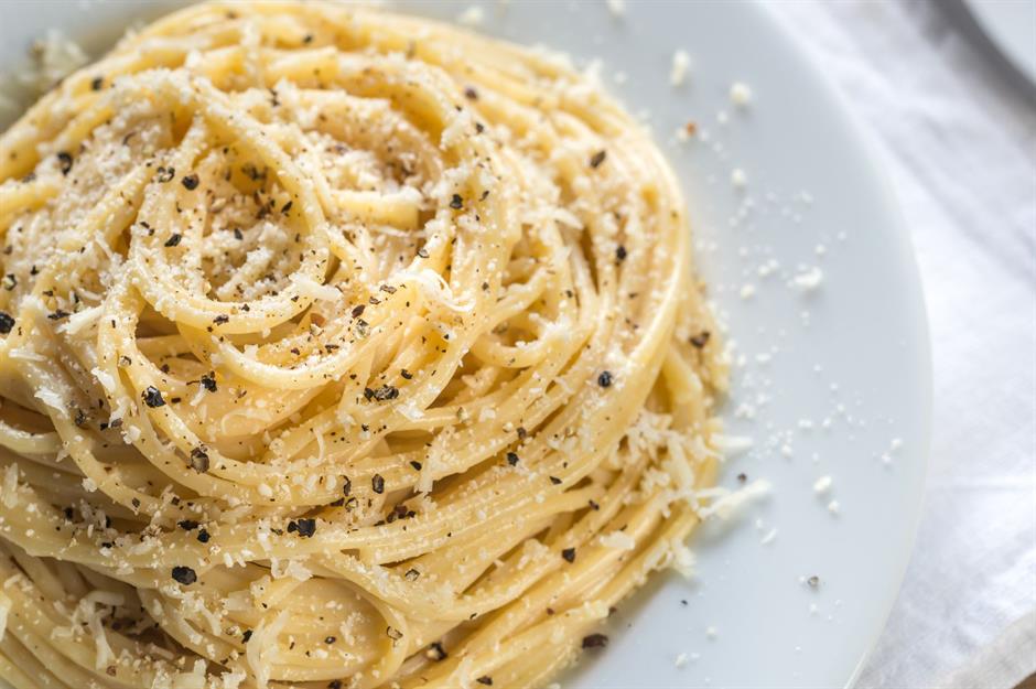Creamy and peppery, cacio e pepe is intensely moreish. On paper, it’s relatively simple to make, with the sauce made up of three main components: cheese, starchy water and black pepper – but it’s incredibly easy to mess up, too. When adding the starchy water (created from boiling the pasta in salty water) to the grated pecorino (Parmesan is perfectly acceptable, too), it’s vital to ensure the water has cooled down slightly – if it’s too hot, the cheese will clump together, resulting in a lumpy sauce. In a bid to achieve an entirely homogenous sauce, some experts even suggest blending the cheese with the water, rather than grating it.