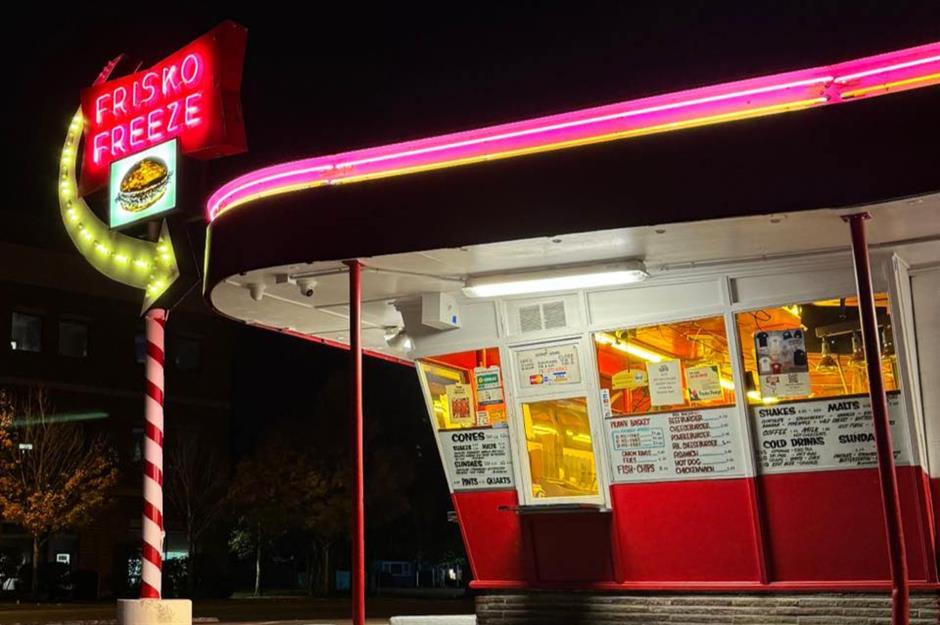 A Tacoma favorite since 1950, Frisko Freeze still evokes that retro fast food charm we all know and love. There’s a huge fluorescent sign shining bright, while the red-and-white exterior is suitably vintage. The menu is famously simple, written next to the hatch where you order your food. Expect classics like cheeseburgers, hot dogs, and prawn baskets.