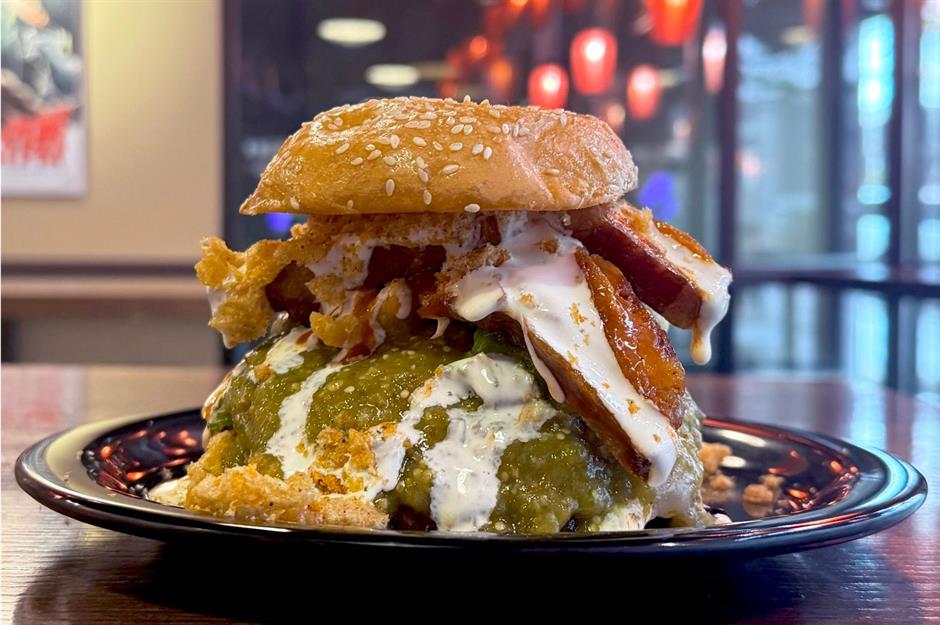 This modern, quick-service burger joint has some seriously funky décor. The vibe is very much industrial-chic with pops of bright color, quirky artwork, and bear-inspired sculptures spread across the walls. You might even find a disco ball dancing overhead, too. The menu is classically American, with mighty burgers, fried chicken, and fries.
