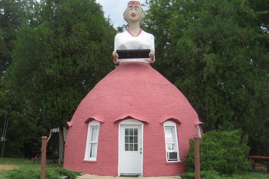 Standing 28 feet tall and shaped like a woman in a billowing red skirt, Mammy’s Cupboard has been turning heads on Highway 61 since 1940. Built as a roadside curiosity, the unusual structure now houses a cozy café where visitors can tuck into Southern comfort classics like fried chicken, po’ boys, and mile-high pies. Equal parts kitsch and charm, it’s one of Mississippi’s most eye-catching dining spots, and the food gets rave reviews from customers.