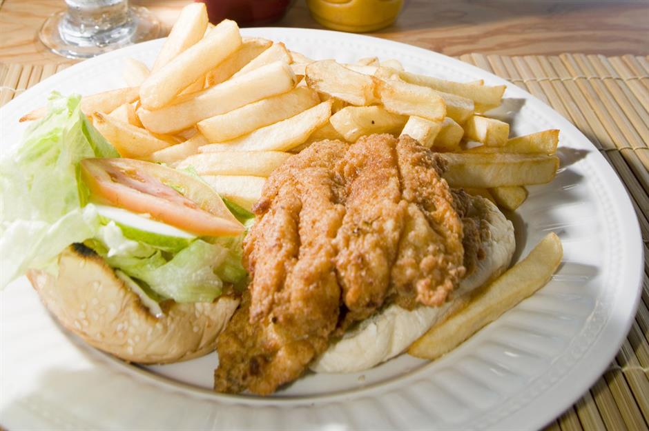 The po' boy dates back to 1920s New Orleans; it was developed by café owners to feed striking streetcar workers, or 'poor boys'. Back then, the baguette-style sub rolls were filled with beef scraps, potatoes and gravy, though the popularity of the sandwich saw more fillings being offered for paying customers. Fried oysters – back then not such a luxury ingredient – were used, along with soft shell crab, ham, cheese, catfish, scampi and shrimp. 'Dressing' a po' boy involves the addition of salad, pickles and condiments such as mayo.