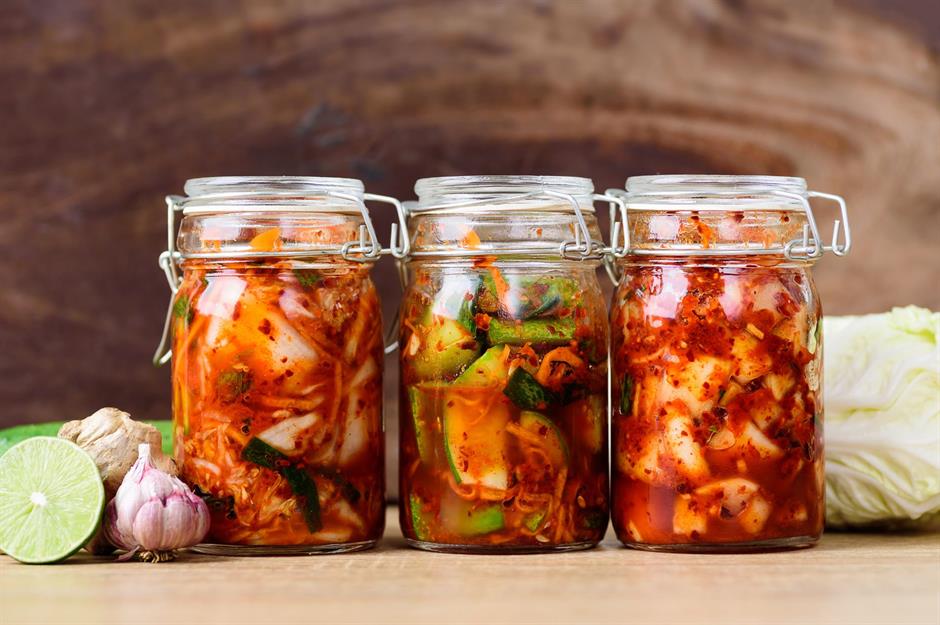 If you're yet to sample this mouthwatering Korean side dish, this is your call to action. Kimchi is made by fermenting vegetables – primarily Chinese leaf, but often white radish, carrot and spring onions, too – in a piquant paste of garlic, ginger, fish sauce, soy, sugar and Korean chilli flakes. It's easy to make at home, and your reward will be a potent probiotic food that's as packed with flavour as it is fibre.