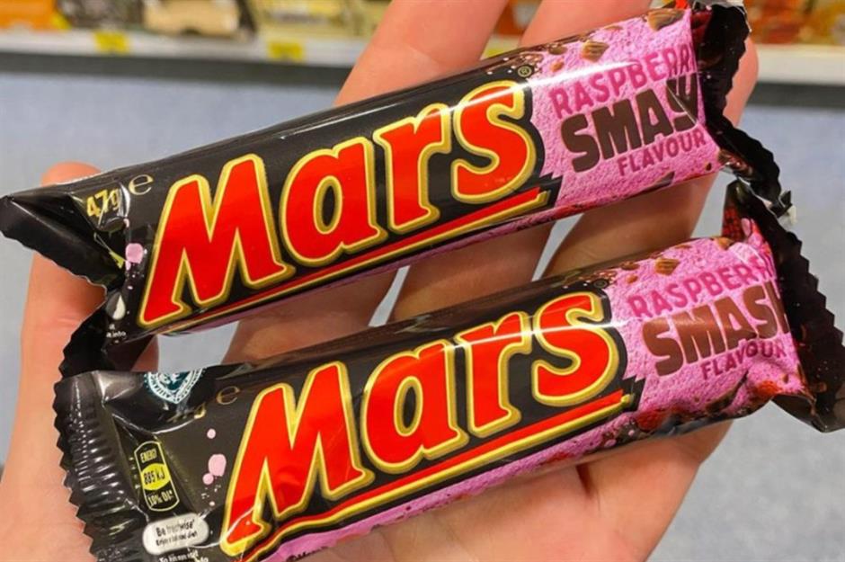 Combining Mars milk chocolate and caramel with a raspberry flavoured nougat, the Mars Raspberry Smash launched in Australia in July 2021. The flavour delighted Mars fans, who instantly loved the fruity combination, with many saying it was even better than the original. The bar occasionally appears in UK B&M stores for limited periods of time.