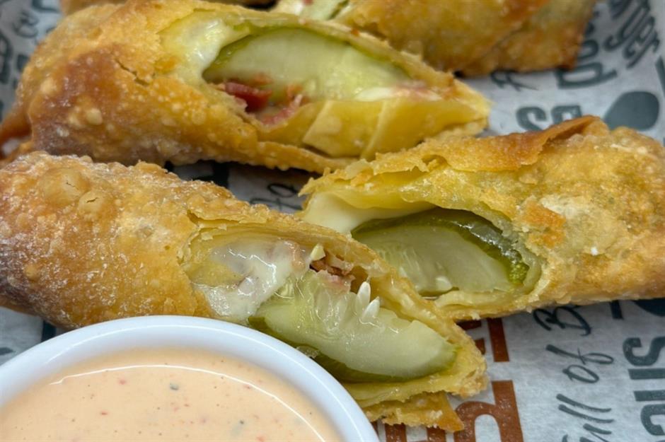 A plate of crispy, crunchy appetizers always sets a meal off on the right foot, and Burger Shed’s cheesy fried pickles are as deliciously crispy and crunchy as appetizers get. A pickle spear, a slice of Swiss cheese, and a strip of bacon are slotted inside an egg roll wrapper and fried to perfection. The popular burger joint has a location in Olathe – and there's another in Altoona, Iowa.