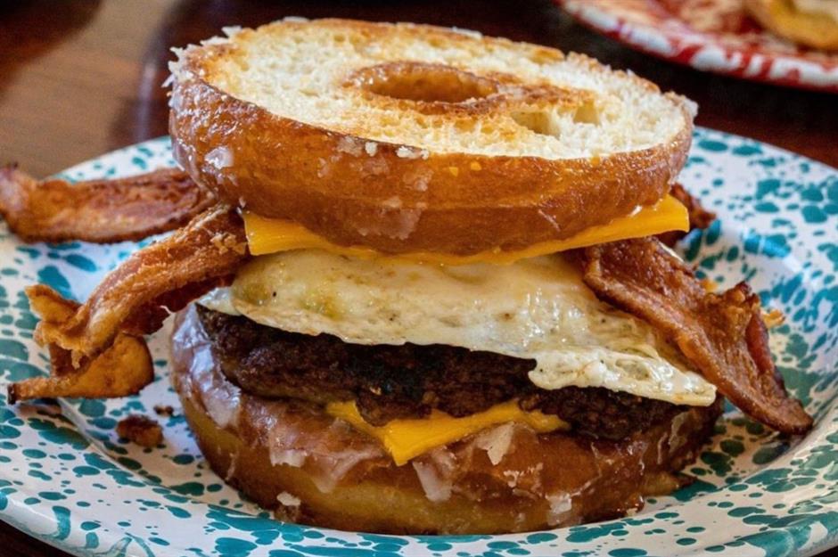 Quirky spot HenDough serves up an array of sweet, sticky donuts topped and filled with delicious flavors (think caramel, espresso, and Key lime). Those after a sweet and savory hit, though, should opt for the donut breakfast sandwich. This morning favorite features a sausage patty, American cheese, a fried egg, and crispy bacon, all slotted inside a grilled donut. It’s a messy one, so ensure you have plenty of napkins to hand.
