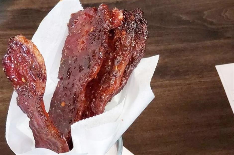Thick-cut bacon glazed with cinnamon brown sugar, served on a stick – could a meaty snack be more perfect? You'll find cinnamon sugar bacon lollis on both the lunch and dinner menu at Founding Farmers, which has three locations in Washington DC. To satisfy your cravings even further, there's an abundance of other tempting, bacon-centric options on the menu, including burgers and sandwiches.