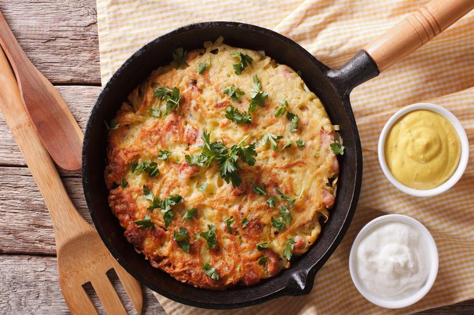 Cualquier plato que incluya patatas fritas suele ser un éxito, y ese es sin duda el caso del rösti suizo. Para preparar esta sabrosa torta de patatas, se pela y se ralla el tubérculo, y luego se fríe en una generosa cantidad de mantequilla hasta formar una torta redonda y plana. Existen muchas variantes en Suiza y Europa del Este, con ingredientes que van desde huevos fritos y queso hasta verduras y carne en lonchas.