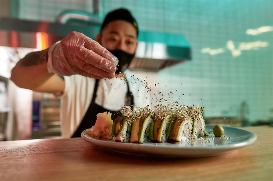 Si visitas Japón, también harías bien en repasar su etiqueta con el sushi, ya que hay algunas cosas clave que debes tener en cuenta. Asegúrate de limpiarte las manos con la toalla húmeda que te darán, y luego coge cada trozo con los palillos. Ni se te ocurra pinchar el sushi con los palillos, porque se considera de mala educación. Además, utiliza solo un poco de salsa de soja (está mal visto desperdiciarla), y nunca mezcles wasabi con ella.