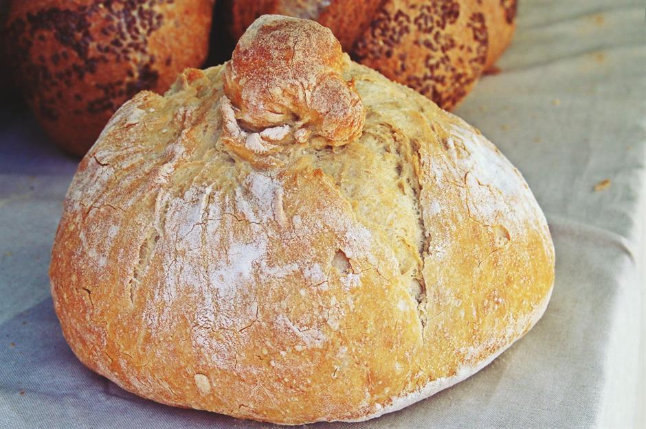 Crusty on the outside and delightfully spongy and airy in the middle, you’ll find pan Gallego in bakeries and home kitchens throughout the Spanish region of Galicia. It’s unique in that it’s made with equal parts soft wheat flour and water, meaning the dough can be difficult to handle. It’s definitely worth the effort, though, as its distinct texture comes courtesy of its high water content. You’ll usually find it served in a round with a topknot, though pan Gallego can also be made flat, ring-shaped or baguette-shaped.