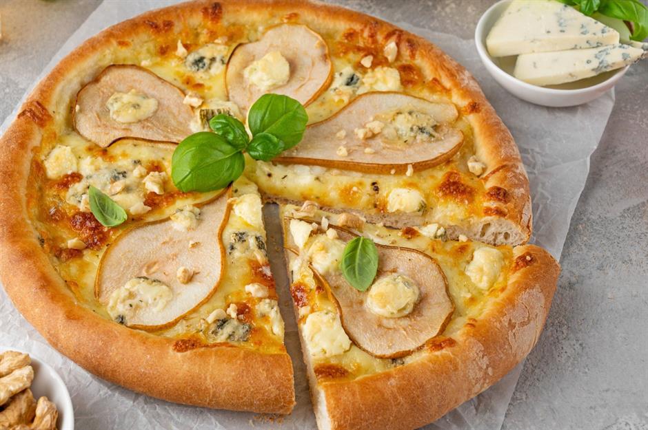 This classic Italian pizza topping draws inspiration from traditional antipasti, Italian nibbles that often include fruit and strong cheeses. Gorgonzola, a blue-veined cows' milk cheese dating back to the 11th century, delivers a pungent, salty bite. When matched with sweet, juicy pear (often poached or thinly sliced) it creates a luxurious balance of sweet and savoury flavours. Often finished with prosciutto, walnuts or honey, it’s a sophisticated topping that transforms pizza into a really refined dish.