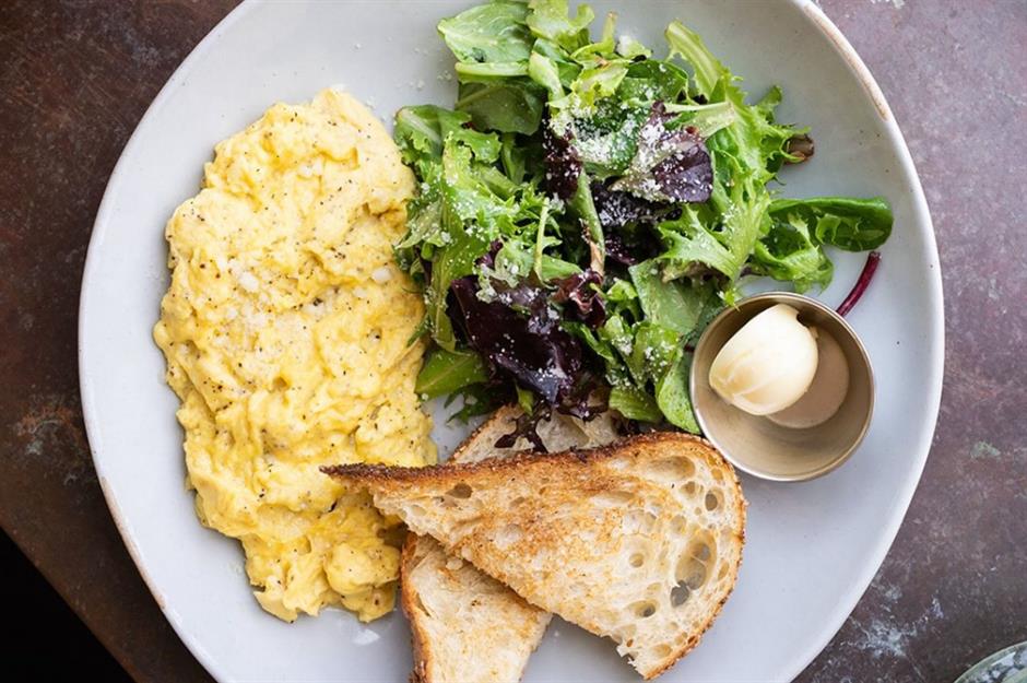 It’s hard to beat the simple pleasure of perfectly scrambled eggs, but Bowood by Niche in St. Louis has given the breakfast staple a gourmet upgrade by infusing it with the rich flavors of the Italian pasta dish cacio e pepe. Located on an idyllic urban farm, the restaurant takes its scrambled eggs to new levels of deliciousness by adding lots of black pepper and pecorino cheese, and serving them on sourdough toast with a green salad.