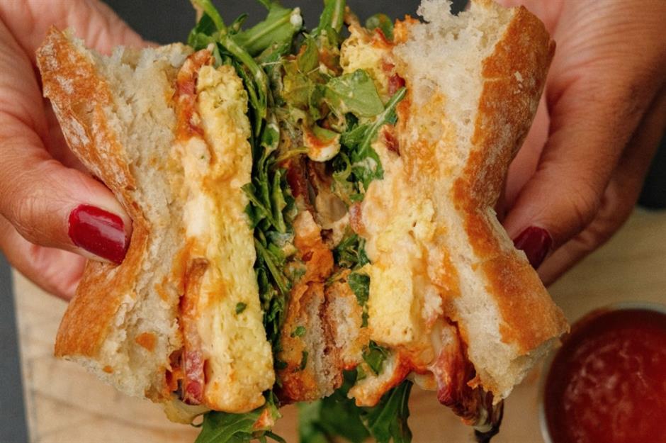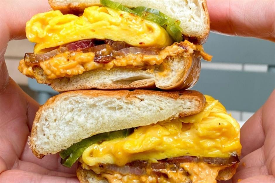 Located in vibrant uptown Minneapolis, Lake and Bryant Café calls itself ‘the 21st-century diner’ and is known for offering classic dishes upgraded with modern flavors. Its much-loved breakfast sandwich swaps out the bread for freshly made waffles – perfect if you can’t decide between eggs or waffles for breakfast. Stuffed with eggs, Cheddar cheese, bacon, and avocado, the sandwich is a delicious fusion of sweet and savory flavors.
