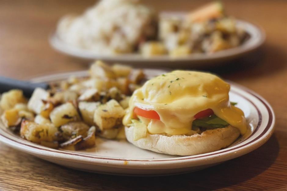 The Green Gateau in Lincoln is another joint that’s famous for its many variations on classic eggs Benedict. The elegant European-inspired bistro is lauded for its ever-changing seasonal menus, and it's consistently named as one of the best brunch spots in the state. Diners rave about the eggs Florentine, which sees perfectly poached eggs set on a potato pancake topped with wilted spinach, asparagus, and grilled tomatoes. The freshly ground organic coffee and house-made iced tea are also sensational.