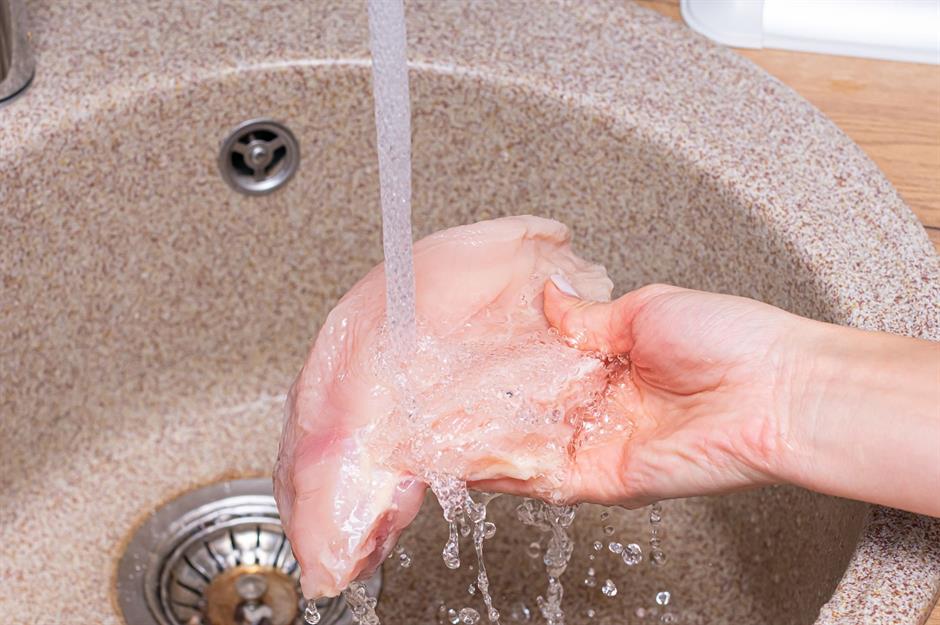 11. Washing raw meat in the sink
