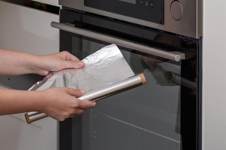 33. Lining the bottom of the oven with aluminium foil