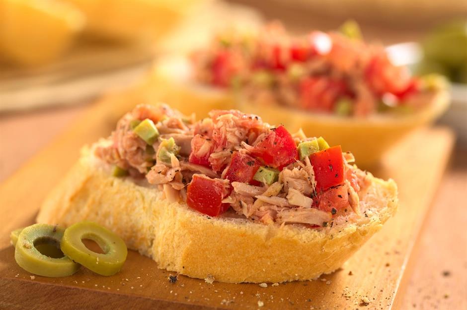 Puede que el pescado y el chocolate no suenen demasiado atractivos, pero prueba el atún con cacao en polvo y puede que te conviertas. Para degustar esta combinación en su mejor momento, deberás cubrir una baguette en rodajas con ventresca de atún, un chorrito de aceite de oliva y un poco de cacao 100 % rallado. El chocolate aporta notas amargas y de frutos secos, y el aceite de oliva da unidad al plato.