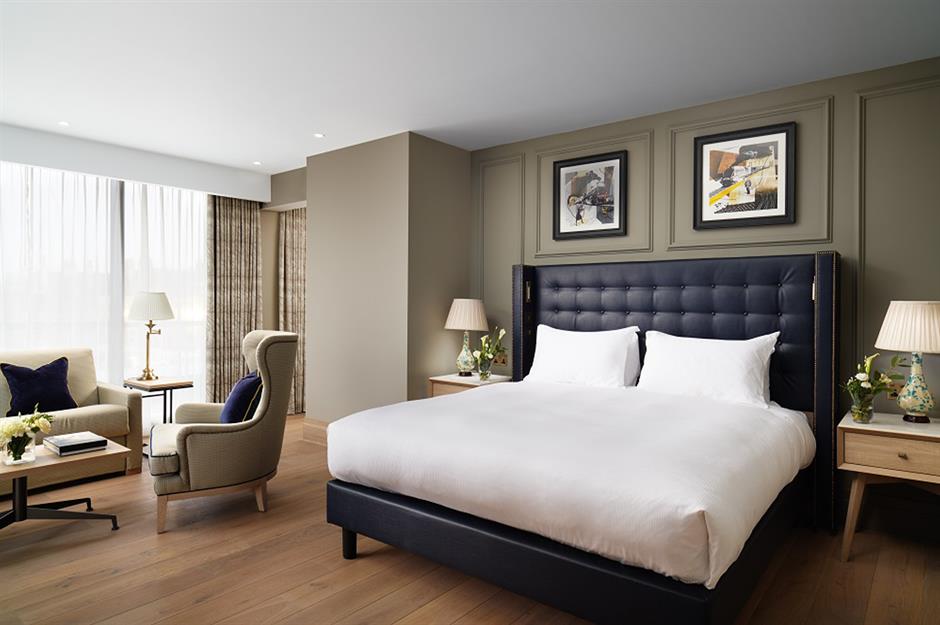 Just inside, the Palm Court atrium is the crowning glory of the hotel; it’s the spot for sipping classy cocktails or relaxing with afternoon tea. The space dazzles with mirrored walls, Art Deco–style lighting and elegant palm fronds, offering a glamorous nod to the 1920s. Upstairs, the 179 bedrooms blend period elegance with contemporary luxury. High ceilings, William Morris–inspired fabrics and classic detailing sit alongside monsoon showers, deep blue tiling and plush bedding.