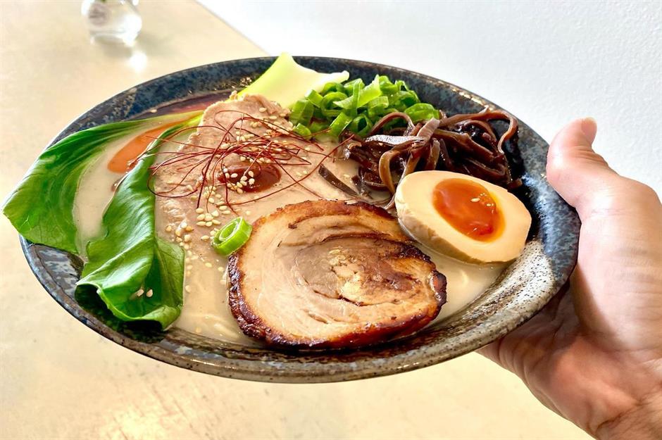 A blink-and-you'll-miss-it ramen shop on Aerodrome Road, Umami Ramen certainly makes an impression with the big, bold flavours of its brilliant bowls. Try the signature tonkotsu ramen with a smoky black garlic oil drizzled over the top, or the tom yum tonkotsu ramen with juicy prawns. The vegan ramen is equally deeply flavoured with its creamy broth of mushrooms and soy milk topped with grilled lotus root and wood ear mushrooms. Too hot for a big bowl of steaming soup? Order the Shake Shake Ramen, a container with all the noodles and toppings, but without the broth.