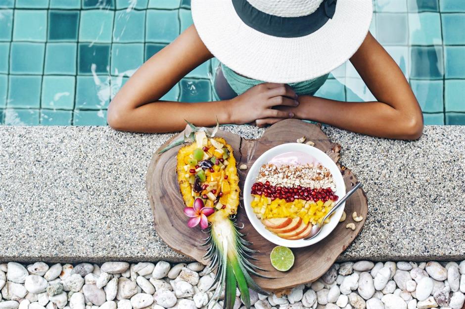 Bali ist der Inbegriff von Wellness. Auf der indonesischen Insel wird die Harmonie von Mensch und Natur äußerst groß geschrieben. Wozu natürlich gutes und gesundes Essen absolut dazugehören. Die frische Küche in den angesagtesten Lokalen Balis ist nicht nur gesund und oft aus biologischem Anbau, sondern super schmackhaft. Zu den klassischen Gerichten gehören zum Beispiel die Kokos-Reisküchlein Klepon, der pikant-süße Fruchtsalat Rujak oder das Entengericht Bebek Betutu. Und natürlich Smoothie-Bowls, Matcha-Grüntee-Getränke und viel leckeres Obst und Gemüse.