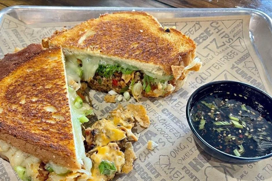 Meltz takes grilled cheese sandwiches to the next level. Although its rotating menu often features mouthwatering specials you won't want to pass up on, the Potsticker Meltz is a classic that regulars return for. This award-winning sammie features provolone and pepper Jack cheese, pork, garlic, ginger, soy sauce, scallions, fried wontons, and a sriracha aioli. It comes in a giant full size and a more manageable half size.